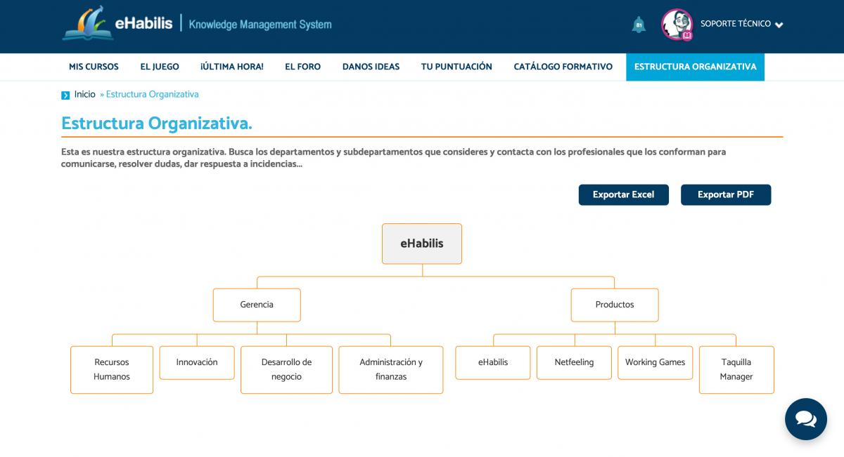 eHabilis es una plataforma que a través de un sistema de importadores nos permite crear y mostrar de forma inmediata toda nuestra estructura organizativa, identificando a toda nuestra organización y el papel que cada profesional ocupa en cada departamento o unidad organizativa.