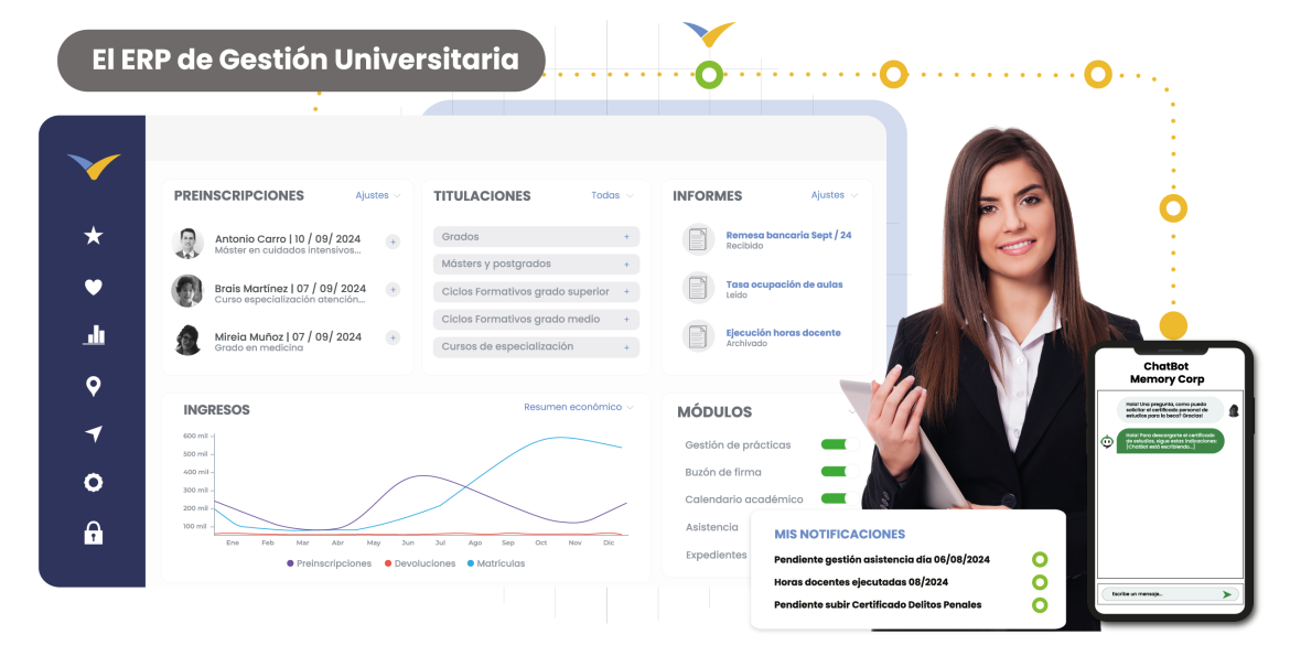 - A system that integrates the management of bachelor's degrees, master's and postgraduate programs, vocational training courses, and specialization programs into a single technological environment.